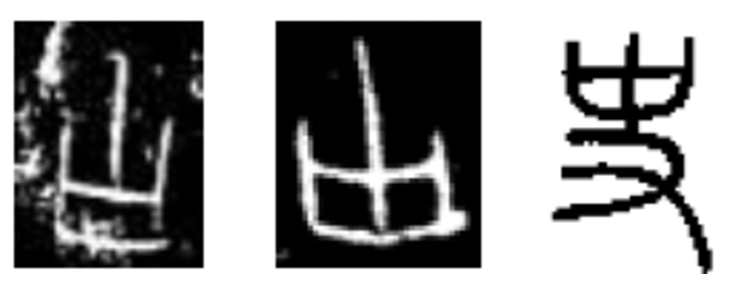 さて図BのCG87を逆さにして、上の方でも登場した甲骨文字口(サイ)と比較してみましょう。※Wikipedia甲骨文字に掲載の拓本「口」(サイ)です。