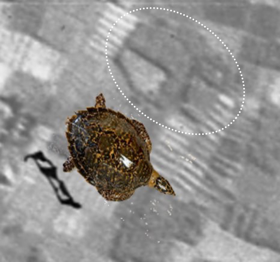 この通り、青塚集落よりも、さらにもっと遠いのです。通学路ですから、最短距離を歩くわけにもいかず、子供の足で1時間半以上かかります。隣の行政区、小牧市の小学校に行った方が余程近いのです。小学生時代の記事主にとっては見たことも聞いたこともない世界が大円なのです。その大円ですが、昭和23年の米軍撮影空中写真で地図で確認すると、狗奴国系の前方後方墳らしきものがありますので、(コマ塚と同じく形から)こちらが亀塚と結論します。