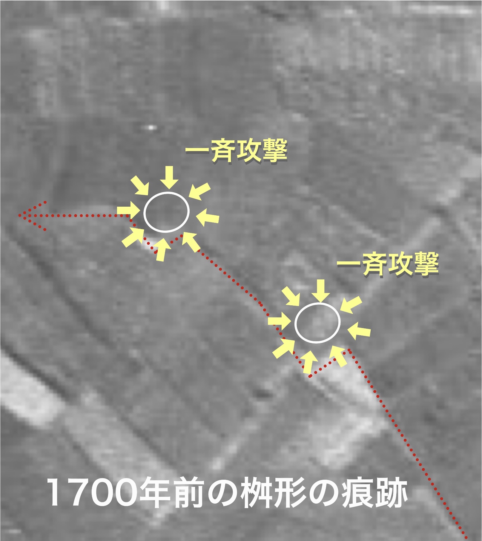 ・狗奴國系のものと思われる前方後方墳を2基発見しました。昭和30年代までは境界線は残っていましたが、楽田工業団地の造成にともない、完全消滅してしまいました。