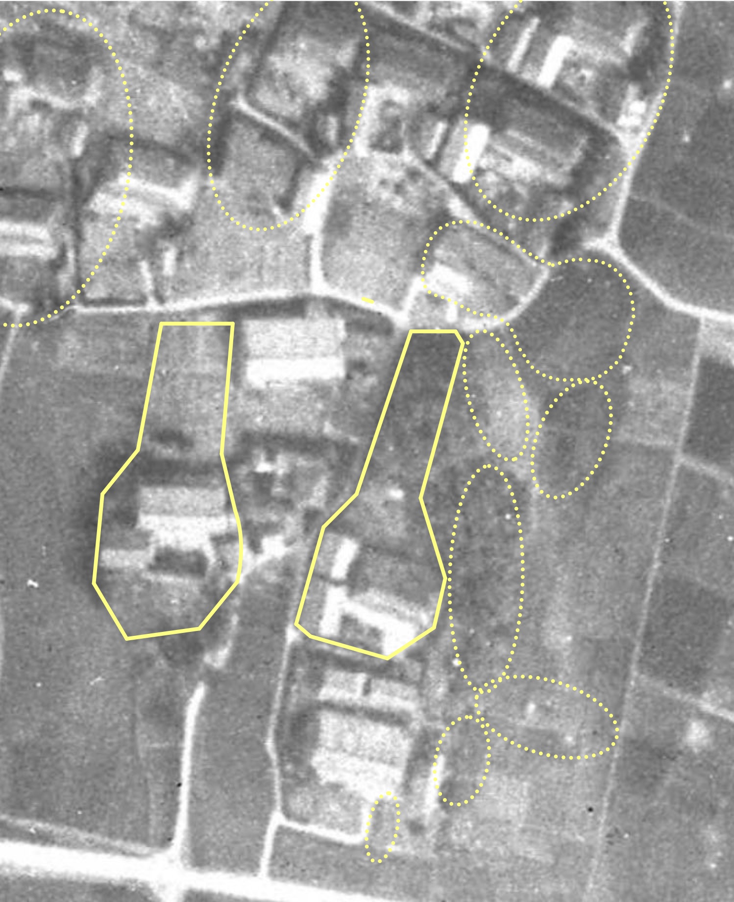 昭和36年国土地理院撮影の空中写真です。土地の境界まではっきりわかります。