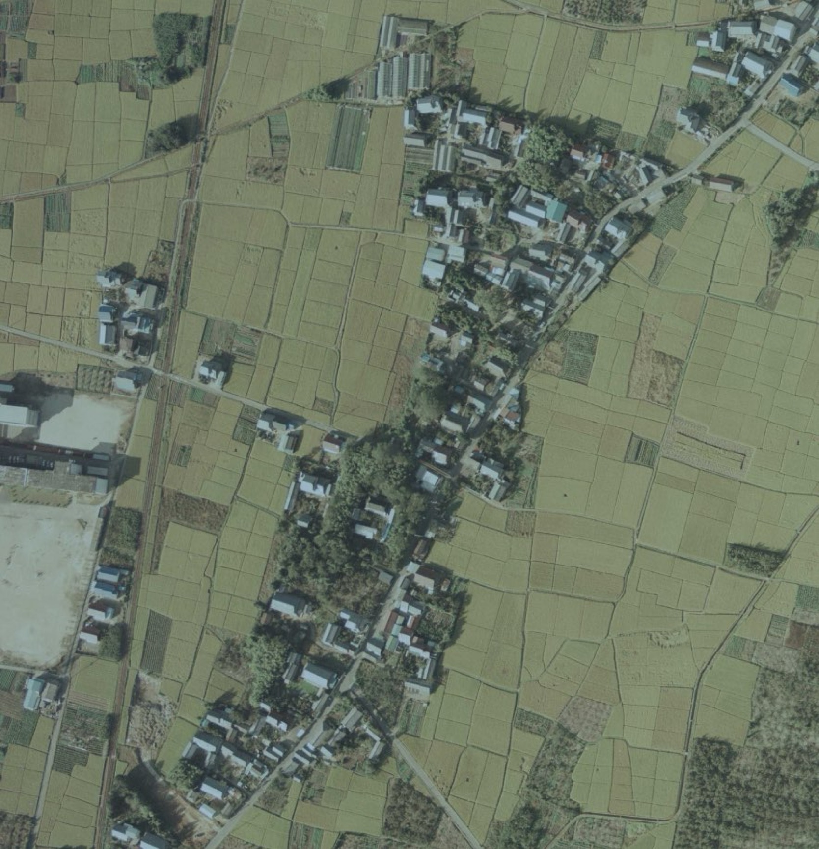 視点を西の方に移し、昭和50年の国土地理院空中写真で確認したところ、発見に至った次第です。後方部の大きさが、隣の中学校(記事主の母校です)の敷地とほぼ同じ面積ということが、おわかり頂けると思います。