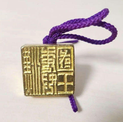 甲骨文字の石磬(せっけい)部にある、綬(飾り紐)ですが、私以外の誰も綬に言及しません(笑)。漢委奴国王印(金印)にも綬(飾り紐)を通す穴が開いているのは皆様もご存じの通りです。他にも銅鏡の綬といい、関羽将軍の青龍偃月刀の綬といい、東部ユーラシア文明というのは綬と権威・権力・軍事力は切っても切り離せないものなのです。後述の甲骨文字「史」「事」にも綬が構成要素として登場します。元は軍事用語だった「成績」に績が使われるのも、ルーツは殷周王朝時代の責・績によります。今の時代、糸も綬も績もありふれたものですが、殷王朝当時は換金率の高い金融資産に準ずるものあって、王権の象徴のひとつでした。