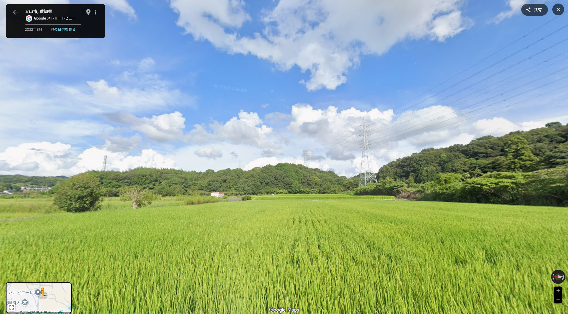 ここで少し余談です。愛知県最大級の古墳が、そもそもどうしてこんな片田舎たる楽田の地にあるのでしょうか? 結論から先に申し上げます。答えはコメの品質です。青塚古墳のある旧楽田村で穫れる米は地形的に尾張の平野地域で最も美味いそうです。青塚古墳周辺の田んぼで獲れる米が美味い…これはどの考古学資料にも載っていませんし、学問の分野ではないので、これからも載ることはありません。加えて自然災害や気象変動に比較的強い土地でもあります。↓画像は楽田の里山と田風景です。里山の花崗岩の天然フィルターで濾過された天然水は、地上と地下の水脈になって、楽田の田を潤します。