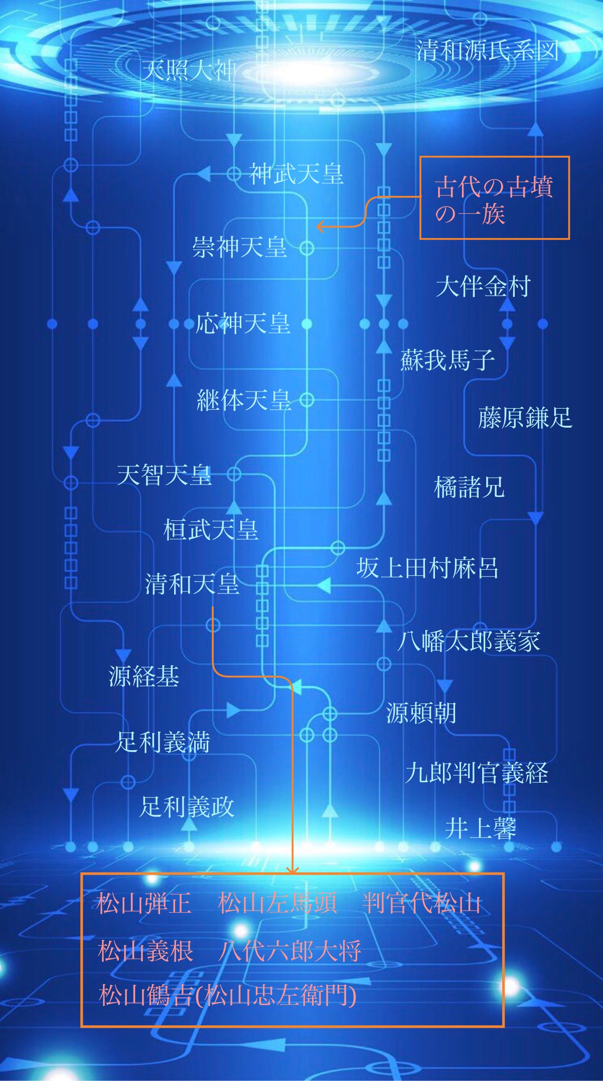 そして松山一族は多田源氏の流れをくむ清和源氏の一流(継体天皇~天智天皇~桓武天皇~清和天皇の子孫)でもあります。https://www.rescue-119.jp/news/archives/1695