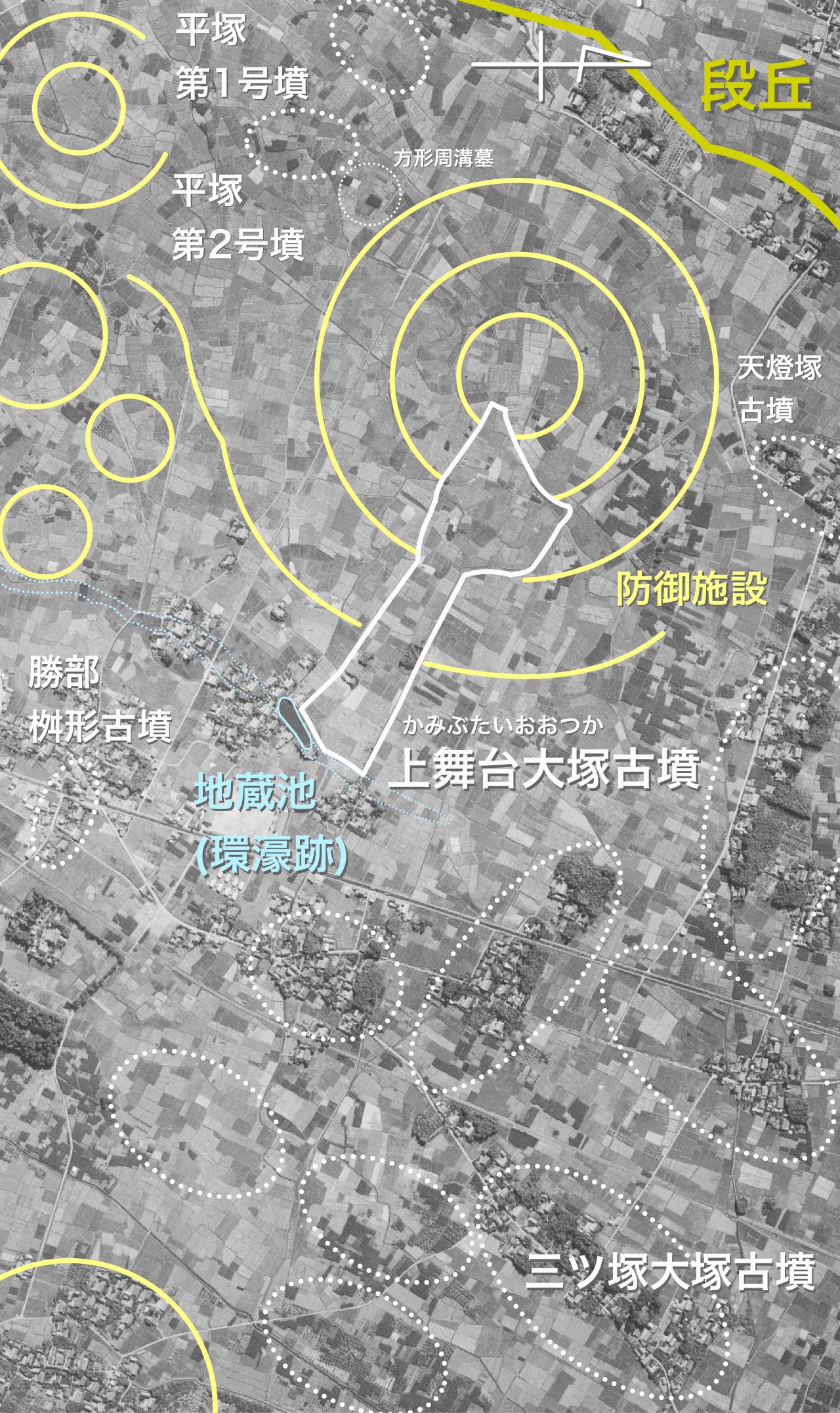 令和の現在、地蔵池は干上がっています。仮に発掘調査をするならば、必ず狗奴国の土器、そして呉の孫権の金印等、呉との関係性を示す何らかの遺物が出てきます。それが狗奴国存在の考古学的証明となるのでしょう。記事主が狗奴国の首長なら滅亡寸前、ソロモンのドズル=ザビのように正妻および室、そして子らを東方に脱出させる際、回廊のように伸びる上舞台大塚の上を通ります。前方部東端丘上から見送ったあと、迫りくるヤマトに鹵獲される前に、金印他を、真下の環濠に向けて次から次に投げ込みます。(勝てば回収すれば済む話ですから)