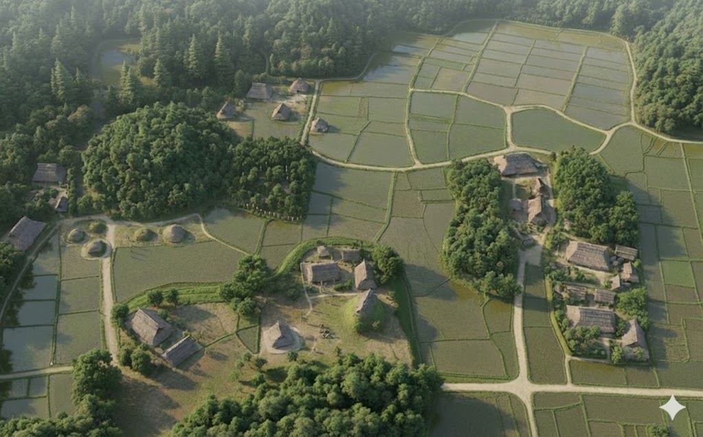 4大古墳群のある楽田村の田んぼで獲れる米が美味い…これはどの考古学資料にも載っていませんし、学問の分野ではないので、これからも載ることはありません。↓画像は楽田の里山と田風景です。里山の花崗岩の天然フィルターで濾過された天然水は、地上と地下の水脈になって、楽田の田を潤します。