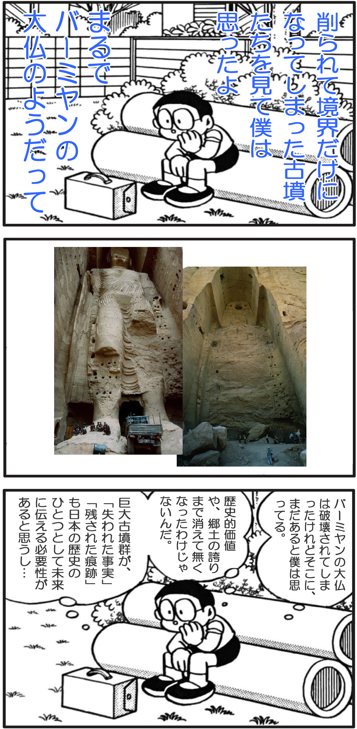 …あるかもしれないと思ってGooglemapで見てみると、第9号墳は普通にそこにありました。まるで斑鳩の法隆寺の駐車場の植込みのように、日常に溶け込んでいます。言われてみないと、これが前方後円墳とは、わかりません。第6号墳.jpg