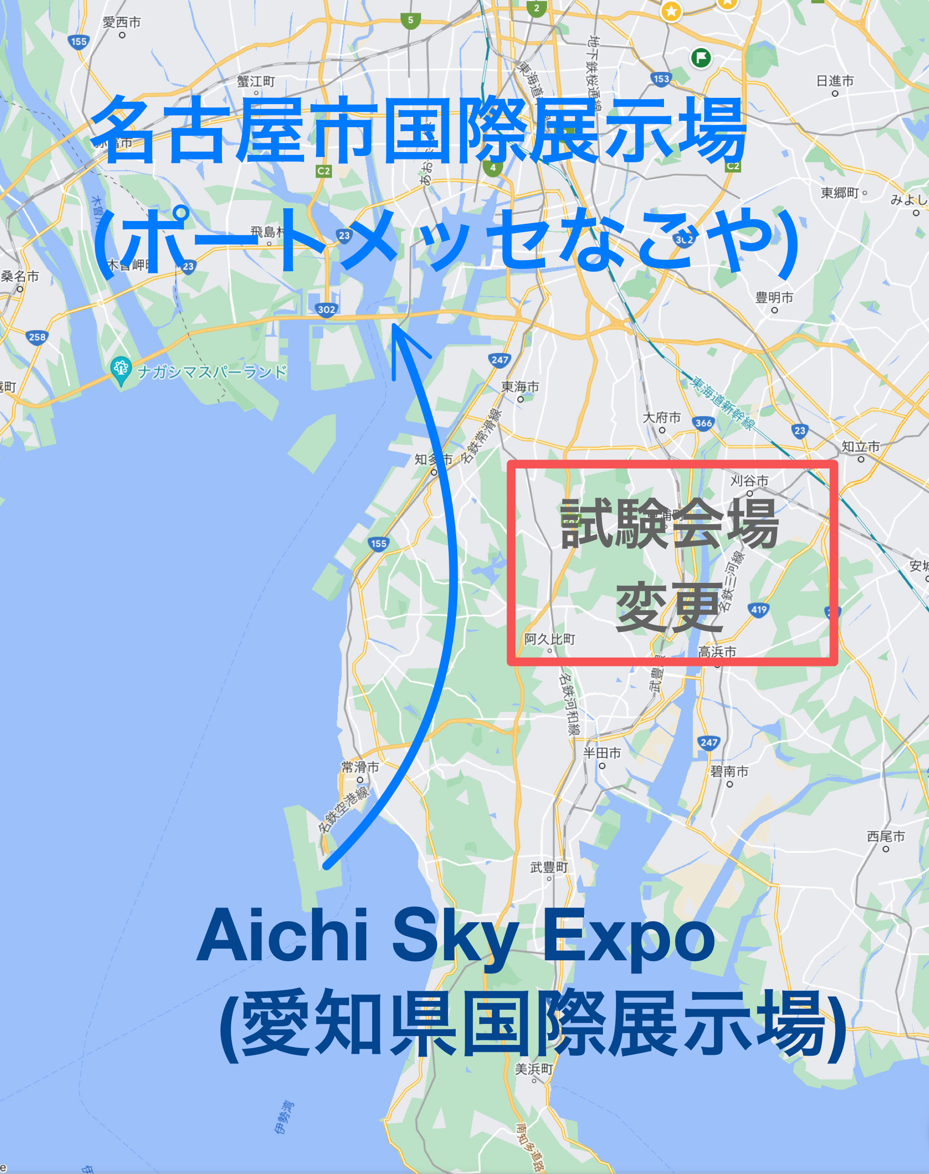 画像↓は当時の試験会場Aichi Sky Expo (愛知県国際展示場)です。下見の時に撮影しました。